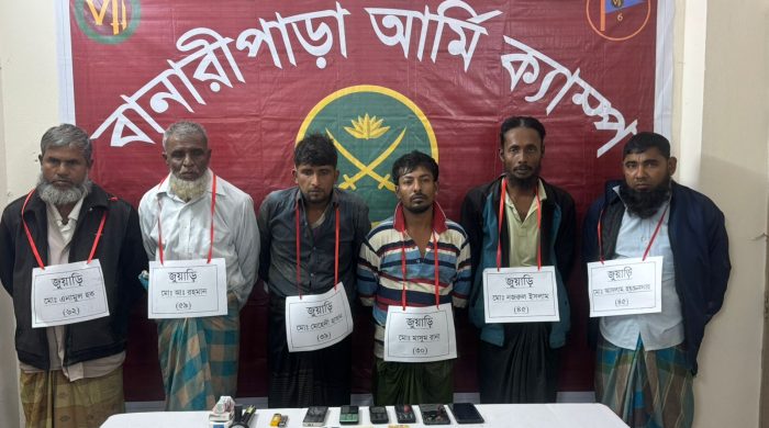 বানারীপাড়ায় ৬ জুয়ারী সেনাবাহিনীর হাতে আটক জাকির হোসেন, বানারীপাড়া (বরিশাল) প্রতিনিধি// বরিশালের বানারীপাড়া উপজেলার বিশারকান্দি হতে ৬ জুয়ারীকে আটক করেছে বাংলাদেশ সেনাবাহিনী। বিশারকান্দি ইউনিয়নের উমারেরপাড় ...বিস্তারিত